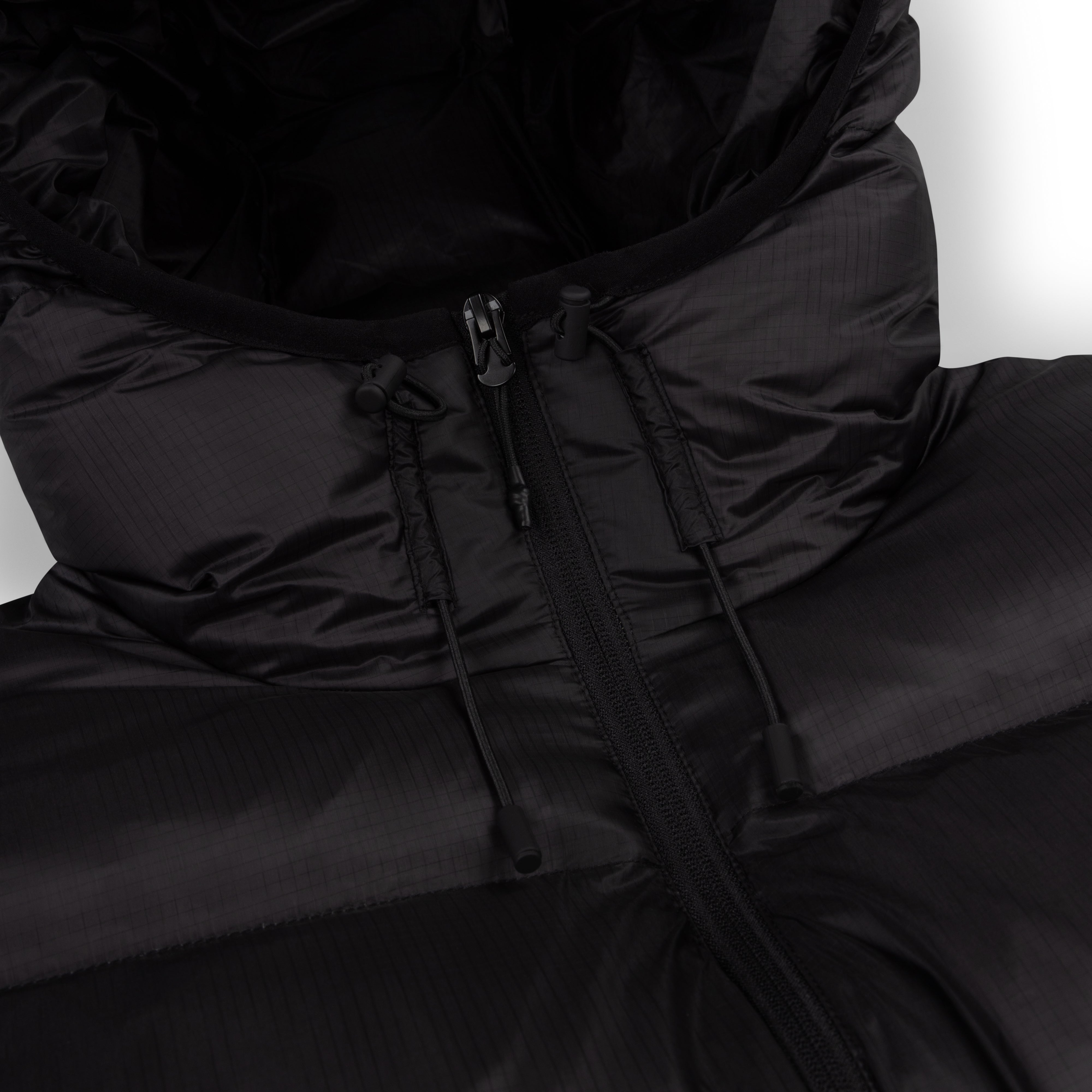 This piece is made from a 90:10 Down Feather fill, with a Ultra thin 7d nylon ripstop outer. Material Compositions can be found on the wash tag of the product.